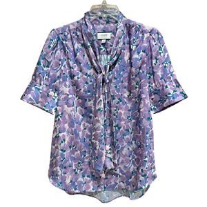 J. Crew Collection Tie-Neck Top In Ratti Lilac Collage Print Sz XS Preppy Office