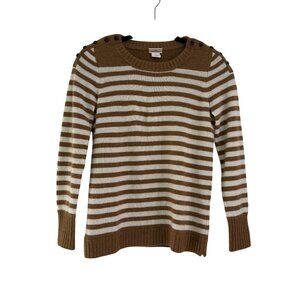 J. Crew Collection Womens Brown/Cream Cashmere Striped Long Sleeve Sweater S