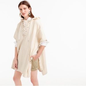 The perfect poncho by J. Crew! Has side buttons, front pocket and back zipper pocket. Size is S/M but, meant to have an oversize fit. Brand new with tags. 100% cotton