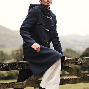 A military-inspired topcoat in a premium Italian wool blend. With a hood for extra outdoor protection, a longer length and toggle buttons down the front, it has a vintage feel and a modern look, all at once. Plus, it's made with melton wool, a fabric blend that's specially woven for durability and generally considered to be the most weather-resistant of all woolen materials. Ours is crafted by the experts at Manifattura di Carmginano, one of Italy's most renowned mills. It's soft-yet-substantial with a luxe, cushy finish. 97% wool/3% polyamide. Hooded. Toggle closure. Patch pockets. Lined. Dry clean. Imported. Fits SLIGHTLY BIG, Classic fit. Body length: 45". Sleeve length: 32". Hits below knee. Including stock photos of other colors to show fit and style. Excellent pre-owned condition!