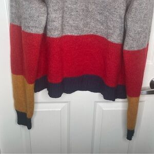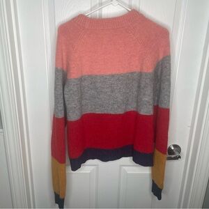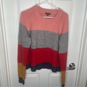 J. Crew Colorblock Crewneck Sweater Wool Blend in Heather Rose Graphite Multi XL