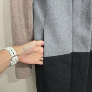 J. Crew Colorblock Funnel Neck Coat Wool Jacket Size 0 Long Line Pockets Neutral colors, modern design.
