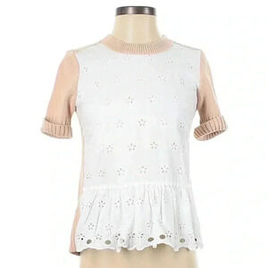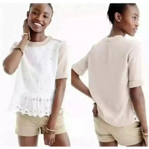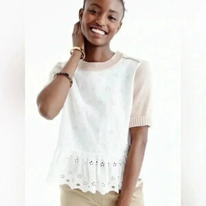 J. Crew Colorblock Peplum Eyelet Sweater Short Sleeves Ivory Beige Size XXS