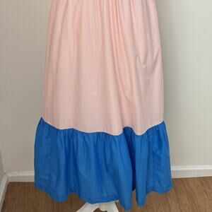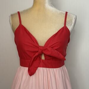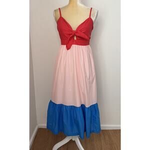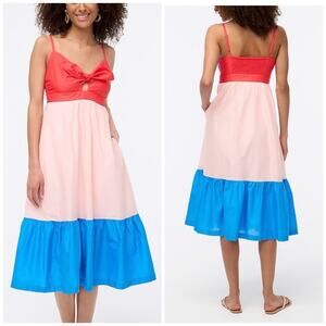 J Crew Colorblock Tiered Tie Front Midi Dress Size 6 Pink Red Blue Lined