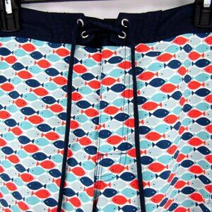 J Crew Colorful Fish Board Shorts Swim Trunks Mens Size 32 Blue Orange Lined