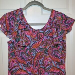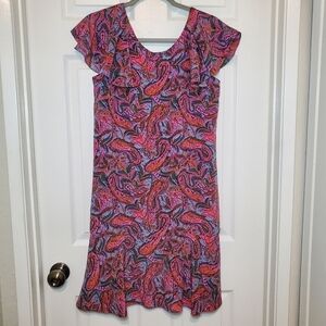J Crew Colorful Paisley Flutter sleeve 100% Silk Dress Size 2 Tall