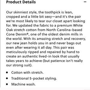J Crew Cone Denim Toothpick Jeans Skinny Fit Sz 29