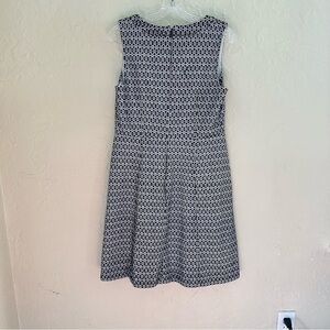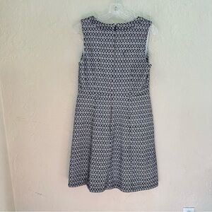 Classic meets modern with this J. Crew Contrast Eyelet Dress in size 10. Designed in a black-and-white eyelet pattern, this sleeveless dress features a flattering fit-and-flare silhouette with a chic notched neckline. The tailored bodice and softly pleated skirt make it versatile enough for workwear, brunch, weddings, or evening events. Lightweight yet structured, it’s a timeless piece for any wardrobe.