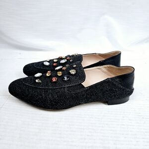 J. Crew Convertible Jeweled Loafer, size 9. A unique loafer that can be worn two ways. Soft leather heel area folds down to convert these loafers into slip-on mule style. Beautiful jeweled embellishments add a fun pop of color. In excellent used condition. Happy Shopping!