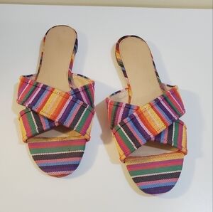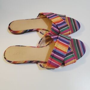 J. Crew Cora colorfull stripes canvas Flat Slides sandals size 8
