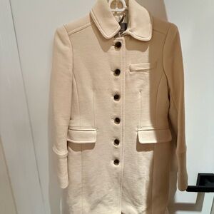 Chic coral pea coat with double-breasted design. Features a stylish collar and sleek buttons. Runs large. Fits like a J Crew size 2. Very warm. Color is stunning. Worn one time for an event