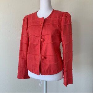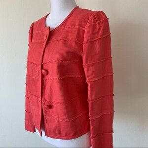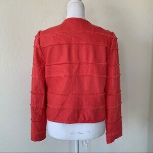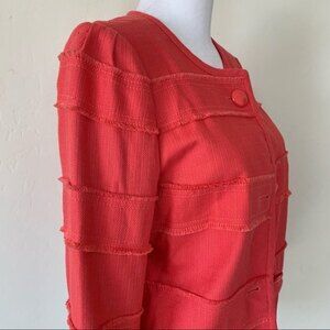 J Crew Coral Fringe Modal Blend Cropped 3/4 Sleeve Blazer Jacket Size 4