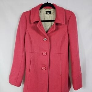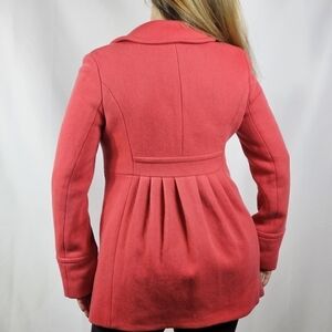 Stylish coral pea coat by J. Crew. Features a classic design with button closure. Perfect for any occasion.