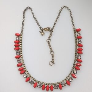 Tags: #jcrew #jcrewjewelry #statementnecklace #coralnecklace #rhinestones #goldtone #costumejewelry #preppy #chic #bibnecklace
