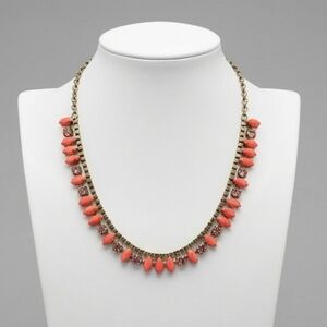 J. Crew Coral Pink & Rhinestone Statement Necklace - Muted Gold Tone