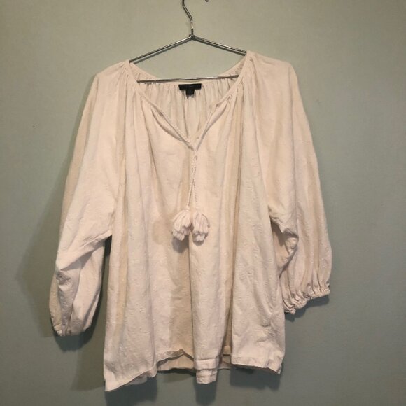 J. Crew Cotton Blend Long Sleeve Fancy Top White - with Laces 2X