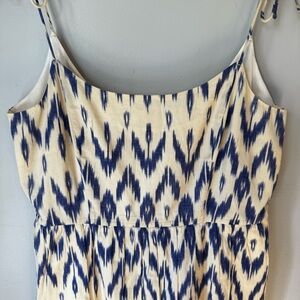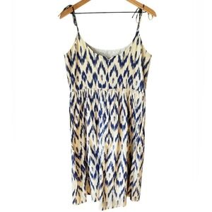 J Crew Cotton Blue White Geometric Tribal Print Lined Tie Strap Dress Sz 10