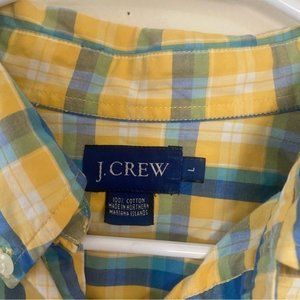J Crew Cotton Blue Yellow Plaid Long Sleeve Button Down Men’s Large