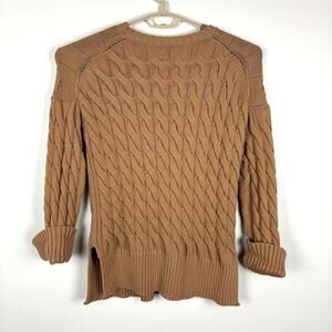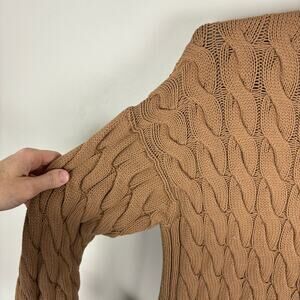 J. Crew Cotton Cable Knit side-slit Sweater Tan Brown M/L BM401 Fisherman
