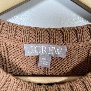 J. Crew Cotton Cable-knit Side-slit Crewneck Sweater Size XS Small Brown Cozy