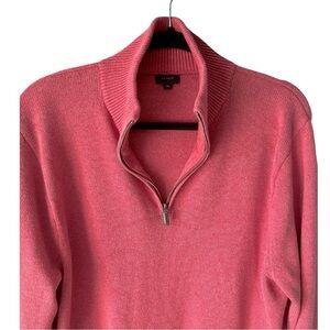 J. Crew Cotton Cashmere Blend Polo Zip Mock Neck Sweater Muted Salmon Pink XL