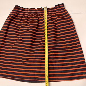 J. Crew Cotton Linen Navy and Orange Striped Skirt Sz 4 Lined Elastic Waist