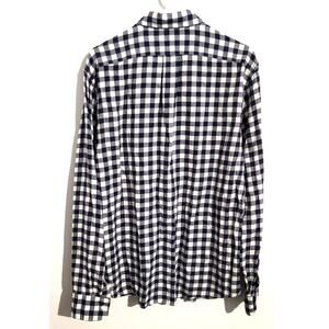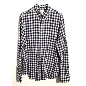 J Crew Cotton Linen Twill Slim Blue Gingham Button Down Shirt Large