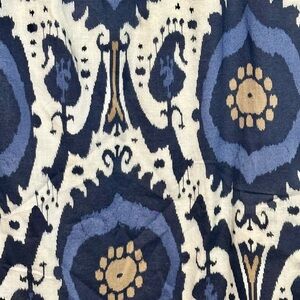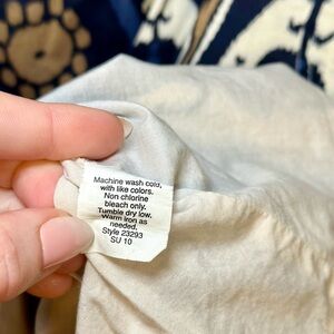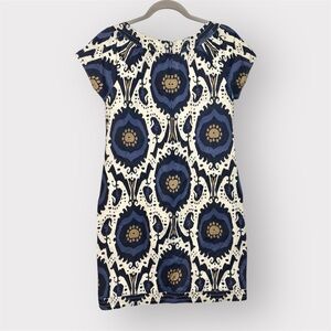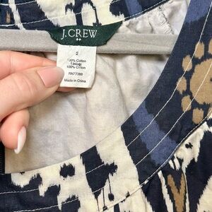 ✨ Pre-owned in great condition! J Crew Cotton Navy Blue Tan Ivory Patterned Mini Dress with Pockets- pull over style, lightweight.