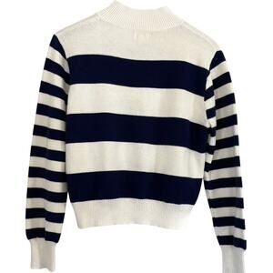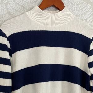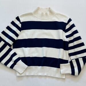 J. Crew Cotton Navy Blue/Ivory Rugby Stripe Mock Neck Long Sleeve Sweater, M