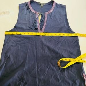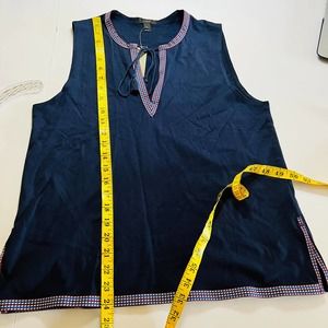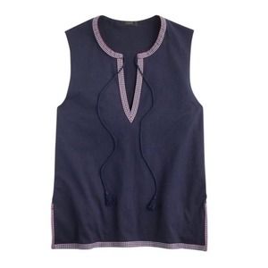 J. Crew Cotton Navy Multicolored Trim Sleeveless Tie Neck Top Size Medium NEW