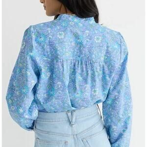 J. Crew Cotton Poplin Floral Fresco Top Blue Size Medium