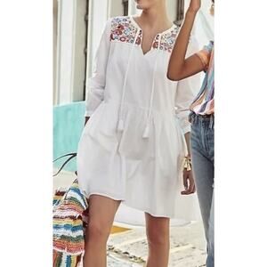 J. Crew Cotton Poplin Tunic Dress Farmer's Market Embroidery White Floral Small