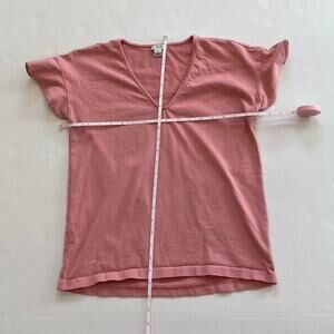 J. Crew Factory Cotton Short Sleeve Ruffle V-Neck Tee/T-Shirt Pink