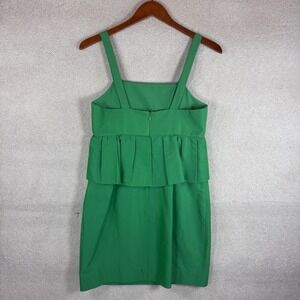 The J. Crew Cotton & Silk Peplum Fully Lined Shift Dress in Kelly Green, size 2, is a versatile and stylish option for various occasions, including weddings, casual outings, formal events, and business meetings. The sleeveless, square neckline, and knee-length hem give it a classic and preppy look, while the peplum detail adds a touch of flair. Made from a luxurious blend of silk and cotton, this woven fabric dress is perfect for the summer, fall, and spring seasons. It is designed for regular sizing and should be dry cleaned only to maintain its quality.