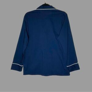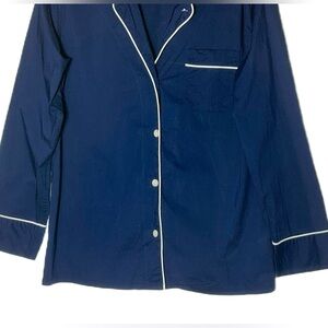 J. Crew Cotton Button-Up Sleep Shirt with Long Sleeves, and Chest Pocket, Navy with White Piping, Size Small. Top only.