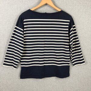 J Crew Cotton Striped 3/4 Tee Shirt Navy Blue Size Medium