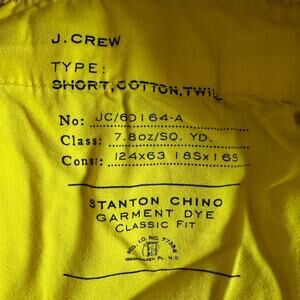 J. Crew 100% Cotton Yellow Stanton Twill Long Walking Shorts