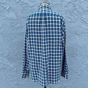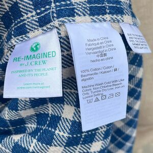 Blue and white plaid button-up shirt by J. Crew. 100% cotton. Part of their eco Reimagined line. Mens medium.