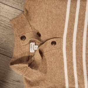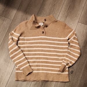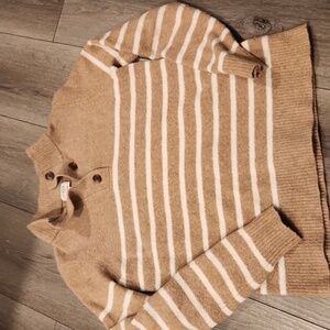 Stay warm and stylish with this cozy striped tan sweater. Perfect for any casual outing.Size Xsmall measurement from pit to pit 18 inches