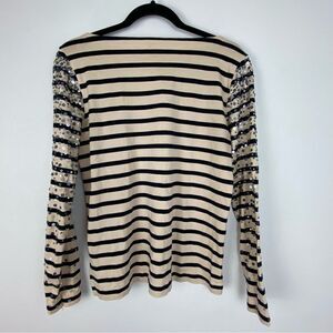 J Crew Cream & Black Striped Sequined Long Sleeve Pullover 100% Breathable Cotton Top in a Coastal Grandma, Nautical, Preppy, Streetwear aesthetic