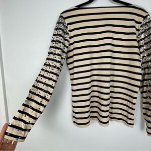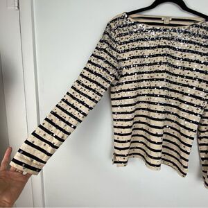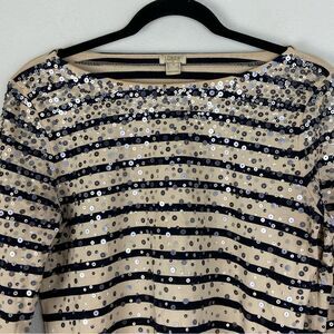 J Crew Cream & Black Striped Sequined Top Coastal Grandma Nautical Preppy Small