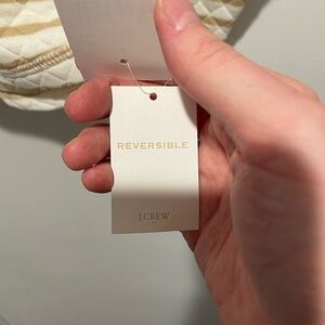 Embrace a blend of style and comfort with this J. Crew tan cream reversible sweater, featuring a classic crew neckline and a distinctive chevron pattern. The medium-weight knit and relaxed fit make it perfect for cooler weather, offering a cozy yet chic look.