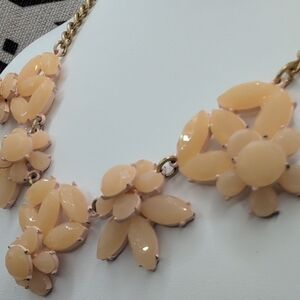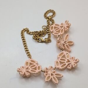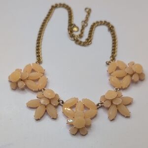 This exquisite cream necklace by J. Crew features five beautifully crafted floral clusters, offering a delicate and sophisticated touch. The necklace's thin chain enhances its elegance, making it a versatile accessory for any occasion. New without tag condition.