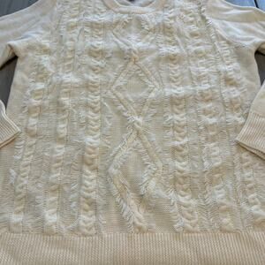 J Crew Cream Fringe Cable Knit Argyle Sweater Women’s Sz M Merino Wool Preppy