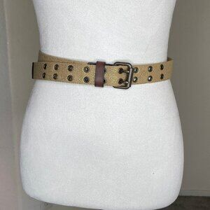 J. Crew Cream Italian Leather Gold Trim Belt Size Xlarge