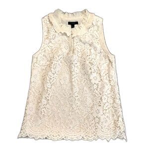 J. Crew Cream Lace Keyhole Ruffle Neck Sleeveless Blouse Size XS