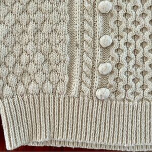 This stunning off white/ cream colored sweater is made from a lambs wool blend. It features cable knit and pom pom details and is in excellent pre owned condition. This is THE Rory Gilmore sweater and perfect for any fall or holiday look! The sweater has a crew neck and is a women's size Small, however I would say it runs slightly bigger than that.
