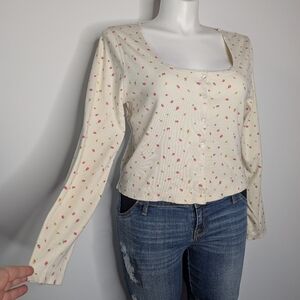 J Crew Cream Pink Yellow Floral Cotton Blend Square Neck Long Sleeve Button Up Cardigan XXL. Good condition.