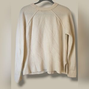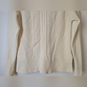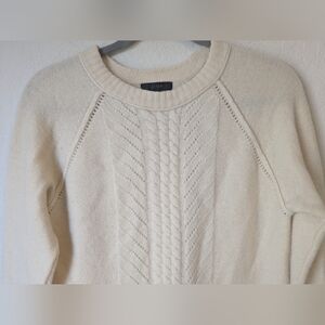 J. Crew Cream Pointelle Cable Knit 100% Wool Knit Crewneck Sweater Minimalist.