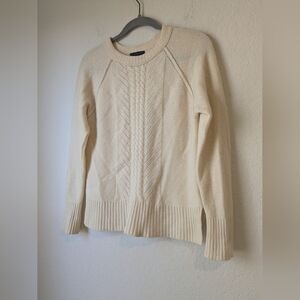 J. Crew Cream Pointelle Cable Knit 100% Wool Knit Crewneck Sweater Classic